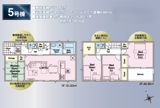 【外観】5号棟 お子様から「部屋がほしい…」そんな成長もうれしい♪さらなる成長見守る4LDKの新築マイホーム