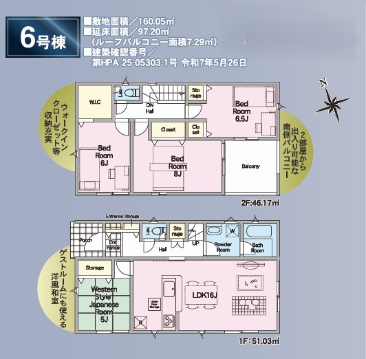 【外観】6号棟 お子様から「部屋がほしい…」そんな成長もうれしい♪さらなる成長見守る4LDKの新築マイホーム